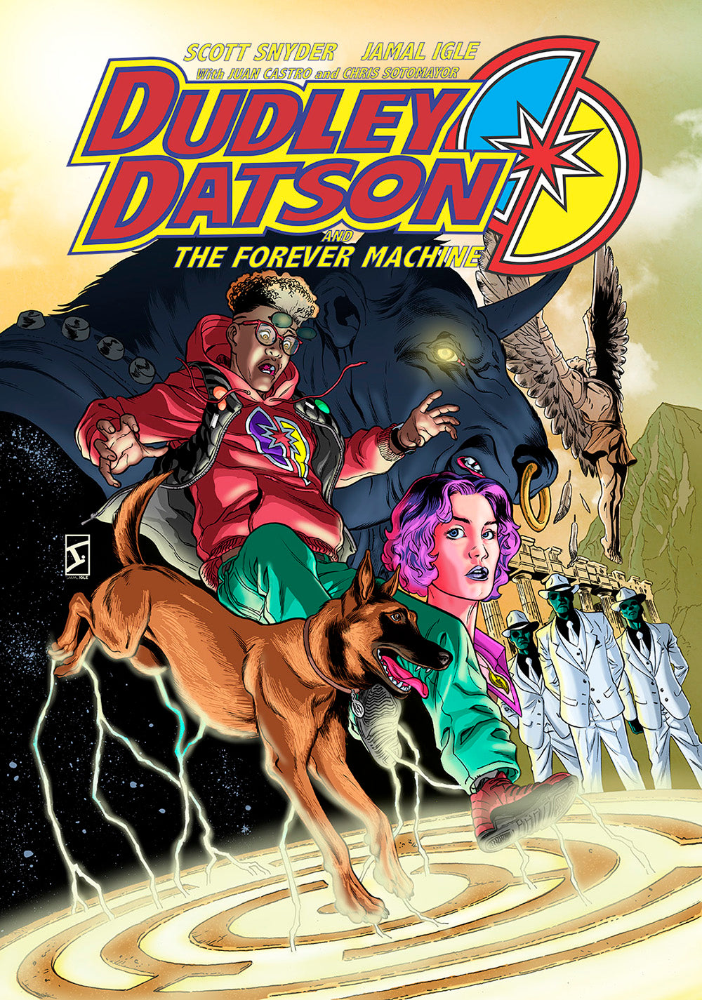 Written by Scott Snyder with art by Jamal Igle and Juan Castro and colors by Chris Sotomayor—Throughout history, the world’s greatest engineers have tried, and failed, to create the perpetual motion machine – a machine that could open doorways through space-time and other terrifying realities. But what if a perpetual motion machine had been created? A machine this powerful would need to be the world’s most guarded secret. And for as long as it has existed, “the Forever Machine” has been pursued by the Needle’s Eye, a group of the rich, powerful and nefarious who seek to use it to fulfill their own desires…